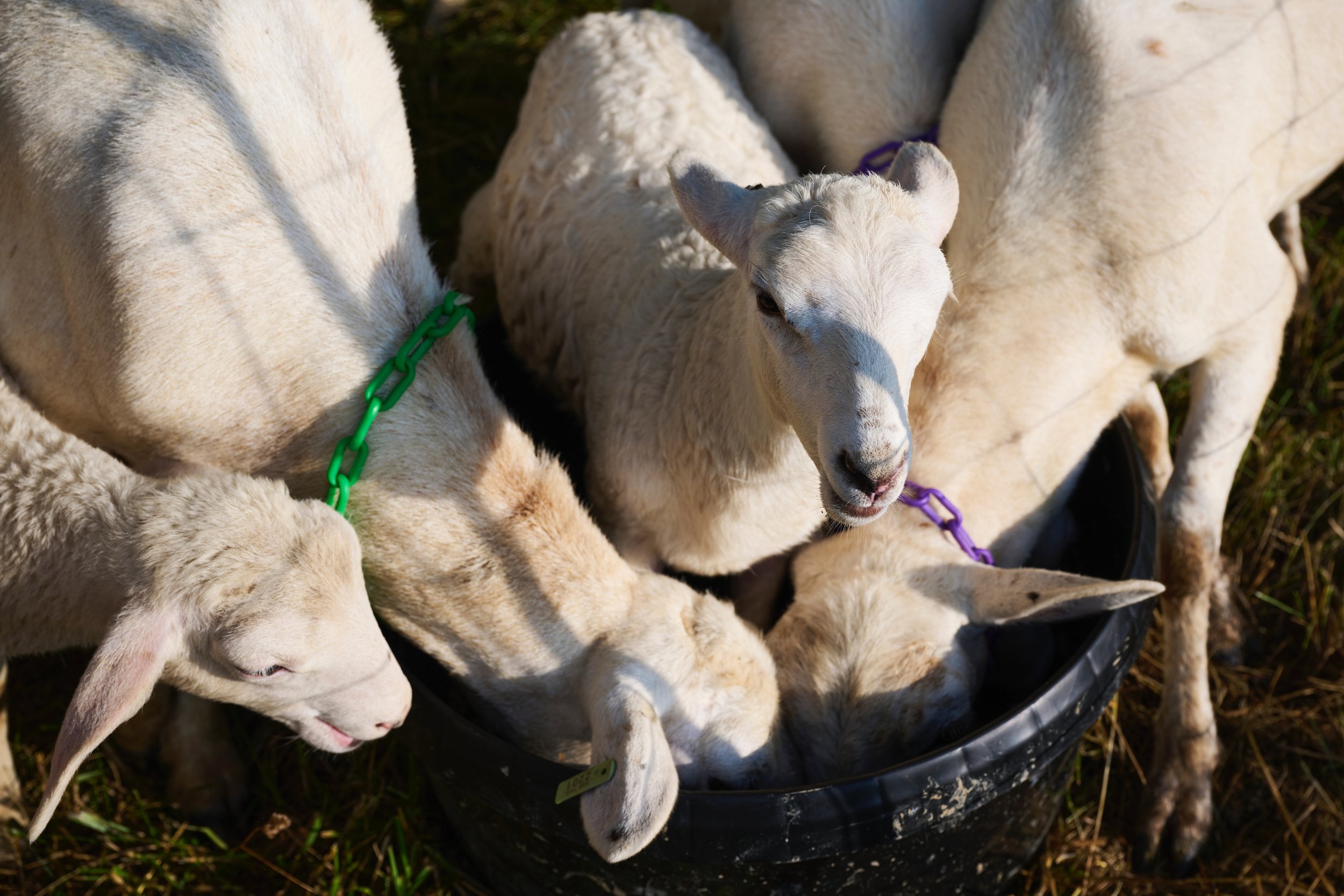 This helps keep the sheep healthy because they’re constantly on the move. It keeps them moving to clean fresh pastures regularly, not eating from areas where they’ve been spending too much time, which reduces parasite pressure and flies. Our sheep are protected from predators using electric net fencing, and are provided with access to high-quality minerals, salt, kelp meal, and sodium bicarbonate to regulate their rumen health. They have regularly checked and filled waterers, and always have access to shade and shelter in the form of trees or a shade structure.
